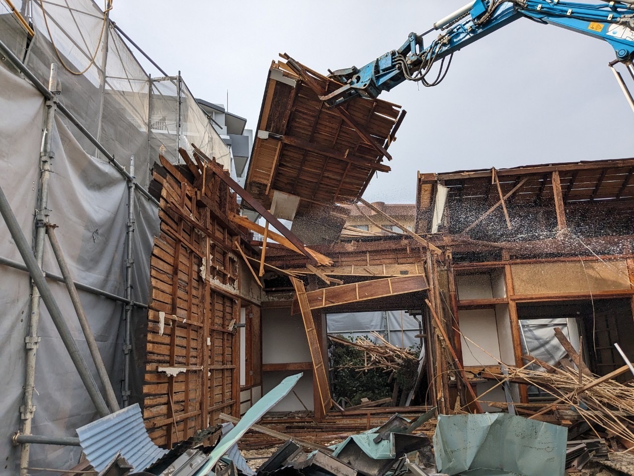 木造屋根撤去中