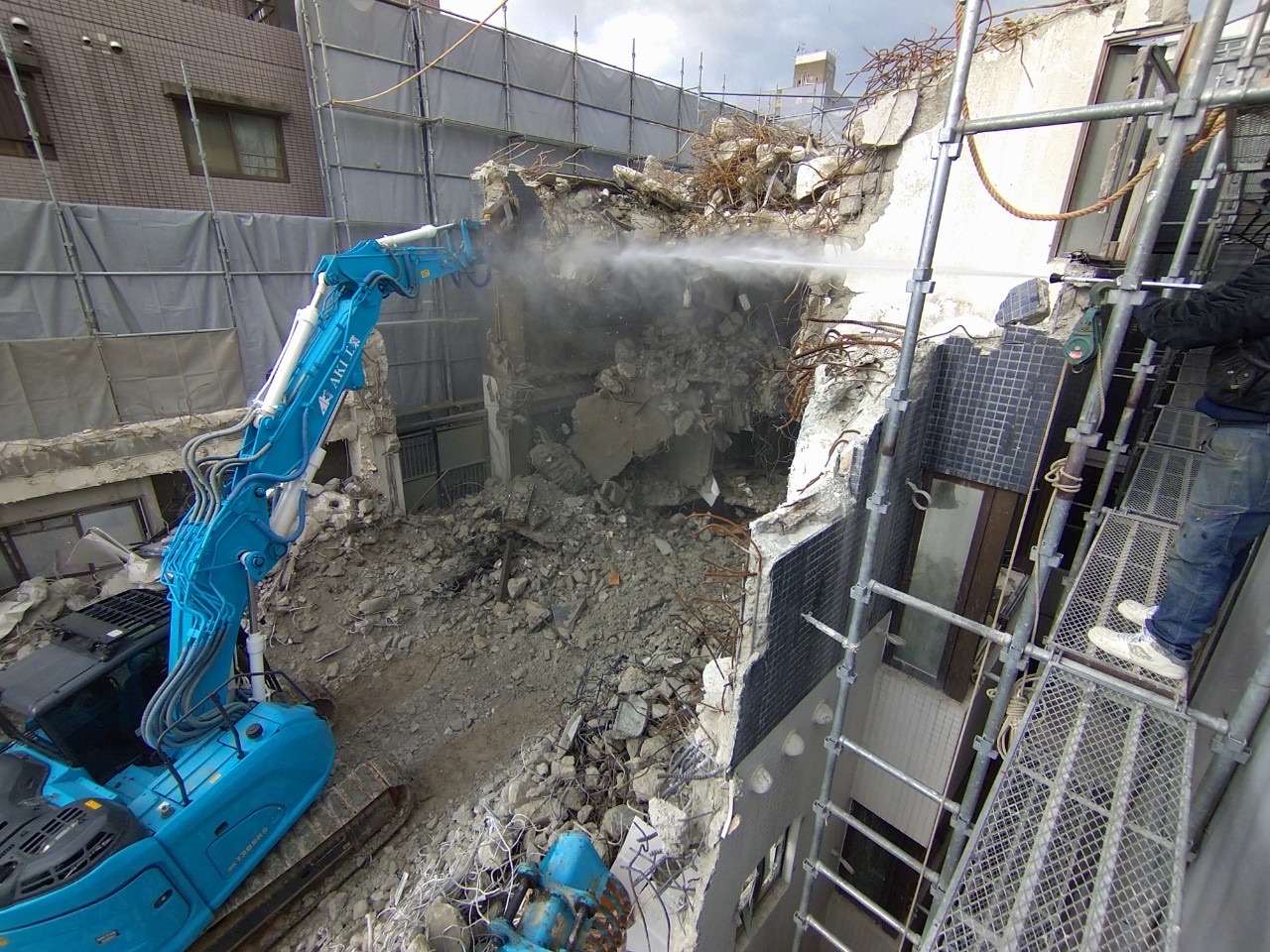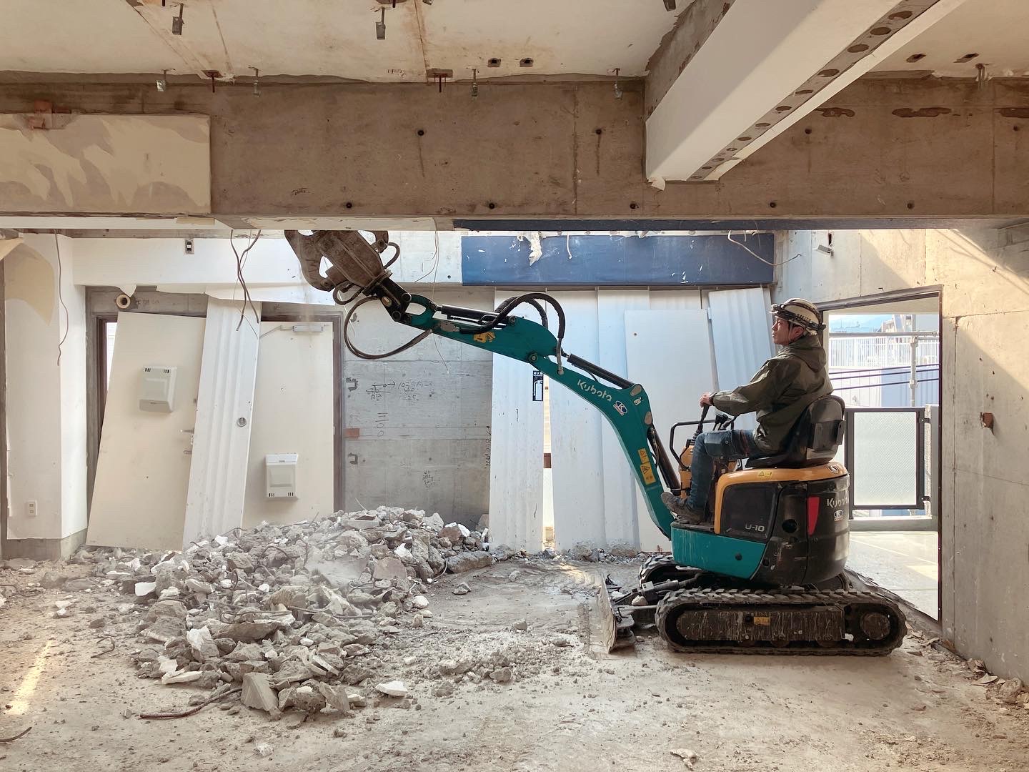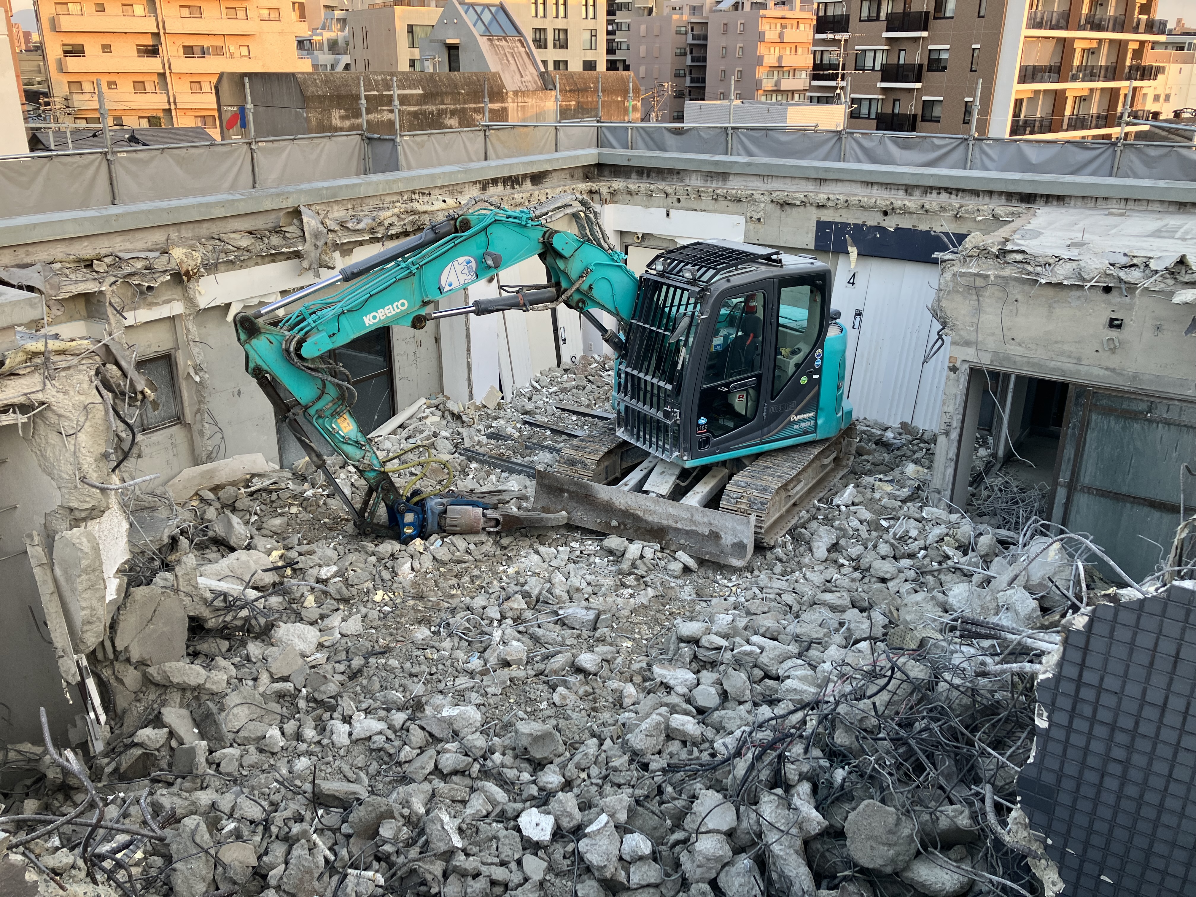階上解体〜福岡市解体業者〜 2024年12月10日 01:23 揚重解体現場が終わったら続けて揚重解体現場です揚重解体の現場が続きますお声掛け頂き本当に有り難い限りです内装解体が終わり屋上の重機下ろし場所の開口空けにブレーカーだと近所に響きまくる為、階段から無理矢理1トンクラスを何とか上げて大割機にて無騒音で開口空けを行いました70トンクレーンにて揚重解体開始!ひたすら噛み続け壁を倒し込みガラ粗割して選別してスロープ作成して少しずつ降りて行き地上到達!すぐ0.45と入れ替えバタバタ噛んでいってガラ搬出準備です工期がない為ノンストップで突き進んでいきます!あとは基礎が上手くいってくれる事を願います。。。どうか水出て来ませんよーに。。。!! カテゴリなしの他の記事 < 前の記事次の記事 > コメント コメントフォーム 名前 コメント 記事の評価 リセット リセット 顔 星 情報を記憶 コメントを投稿する