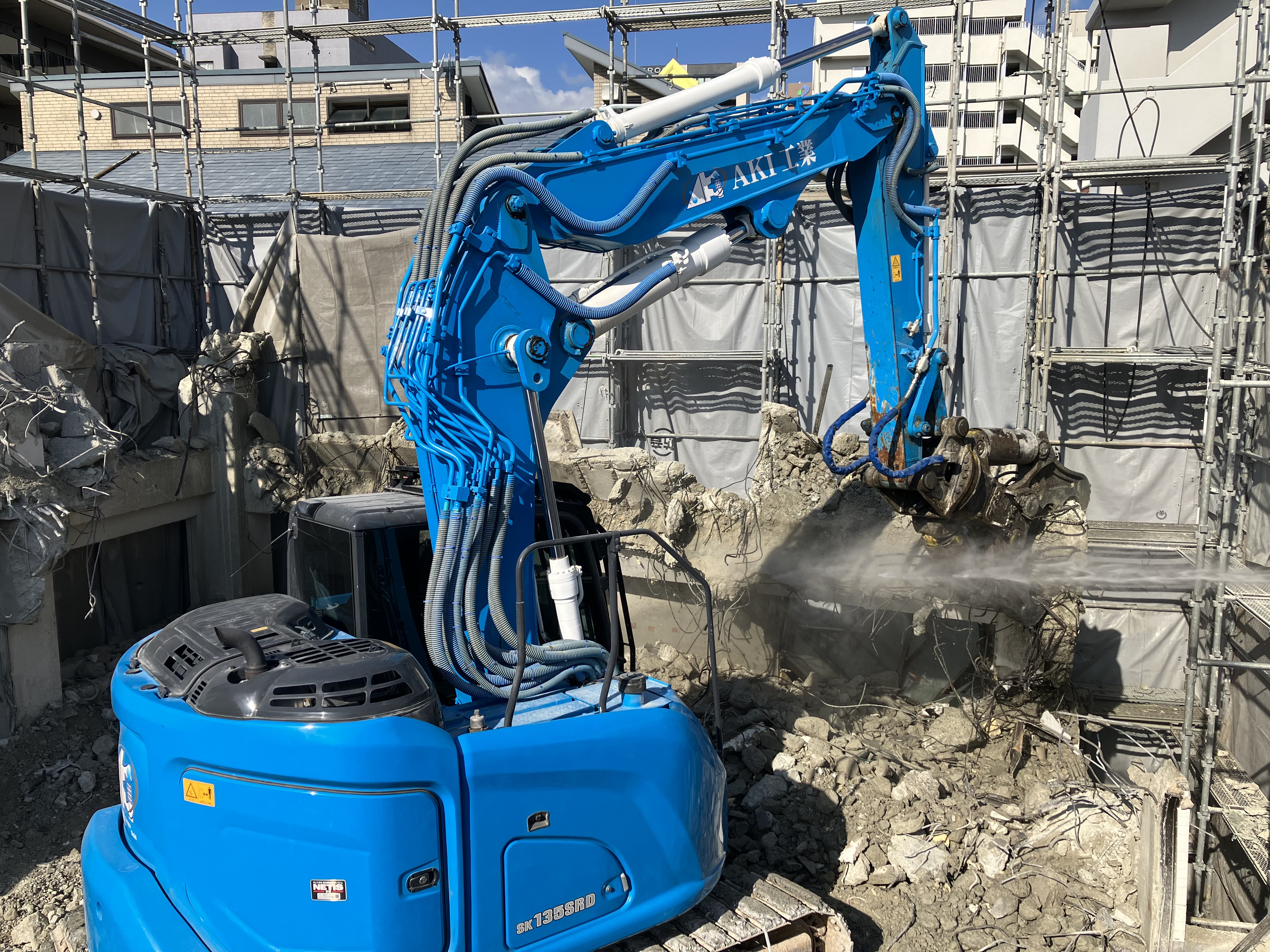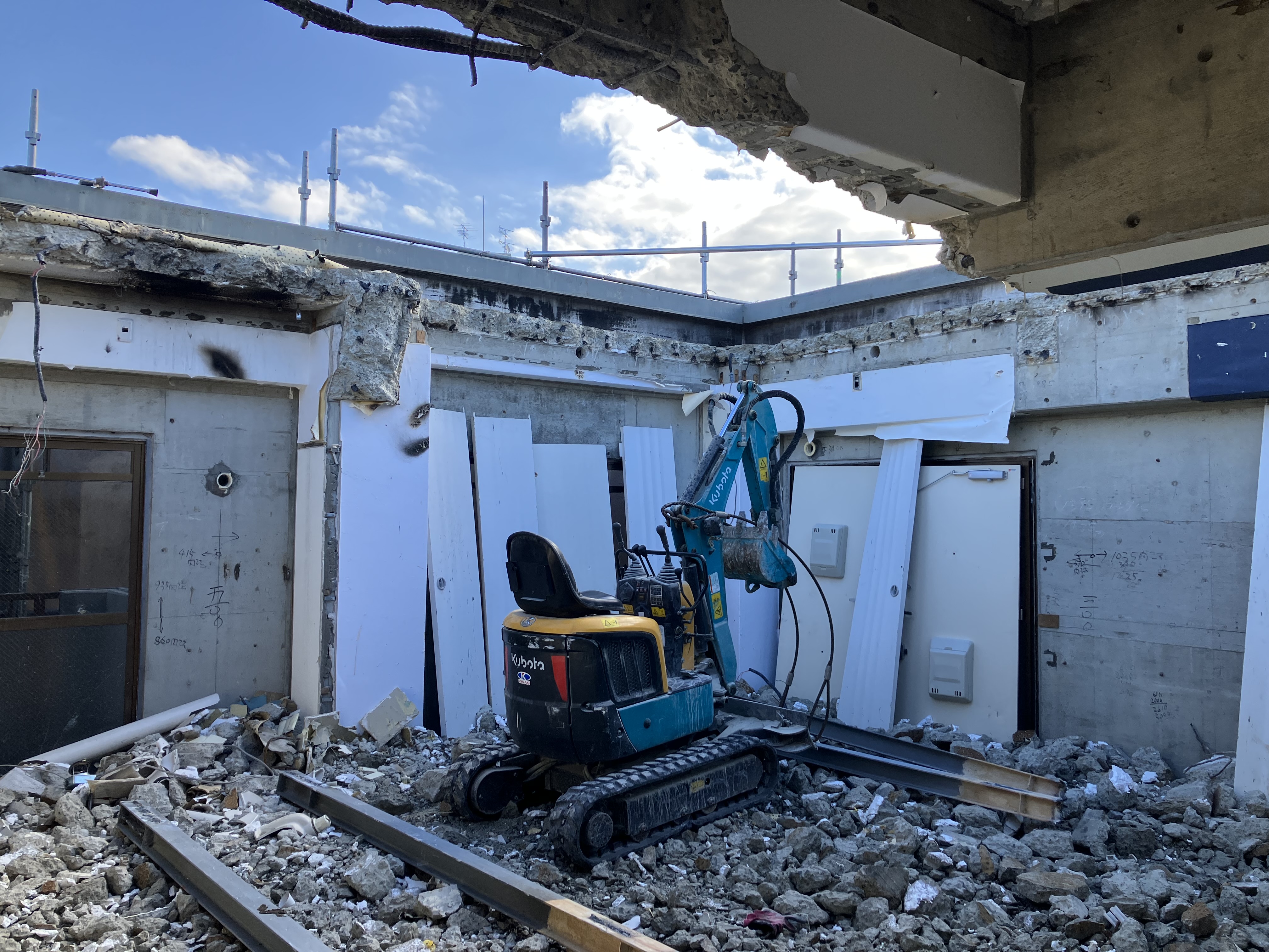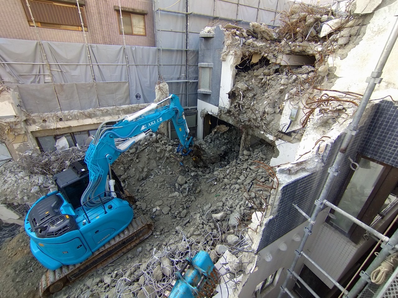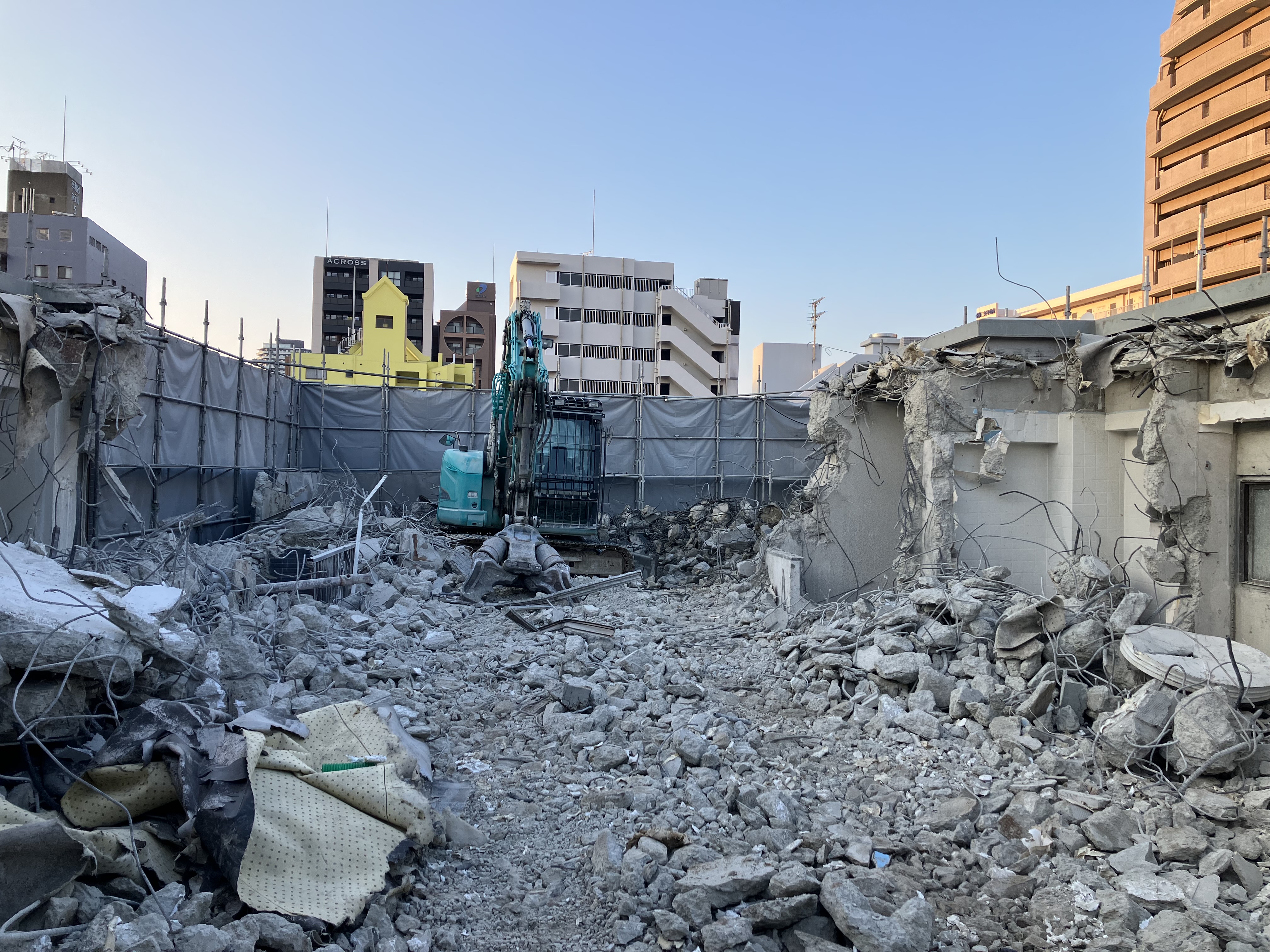 階上解体〜福岡市解体業者〜 2024年12月10日 01:23 揚重解体現場が終わったら続けて揚重解体現場です揚重解体の現場が続きますお声掛け頂き本当に有り難い限りです内装解体が終わり屋上の重機下ろし場所の開口空けにブレーカーだと近所に響きまくる為、階段から無理矢理1トンクラスを何とか上げて大割機にて無騒音で開口空けを行いました70トンクレーンにて揚重解体開始!ひたすら噛み続け壁を倒し込みガラ粗割して選別してスロープ作成して少しずつ降りて行き地上到達!すぐ0.45と入れ替えバタバタ噛んでいってガラ搬出準備です工期がない為ノンストップで突き進んでいきます!あとは基礎が上手くいってくれる事を願います。。。どうか水出て来ませんよーに。。。!! カテゴリなしの他の記事 < 前の記事次の記事 > コメント コメントフォーム 名前 コメント 記事の評価 リセット リセット 顔 星 情報を記憶 コメントを投稿する